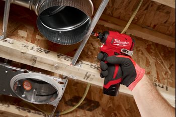 Ob bei Montagearbeiten über Kopf, beim Befestigen von Rohrschellen oder beim Einbau von Komponenten in beengten Schächten – der 12 Volt-Akku-Schlagschrauber M12 BLIDRC erweist sich bei SHK-Arbeiten als besonders vielseitig und handlich. Mit einer Länge von nur 109 Millimetern und einem Gewicht von 0,6 Kilogramm überzeugt das kompakte und leichte Werkzeug im täglichen Einsatz auf der Baustelle oder in der Werkstatt.