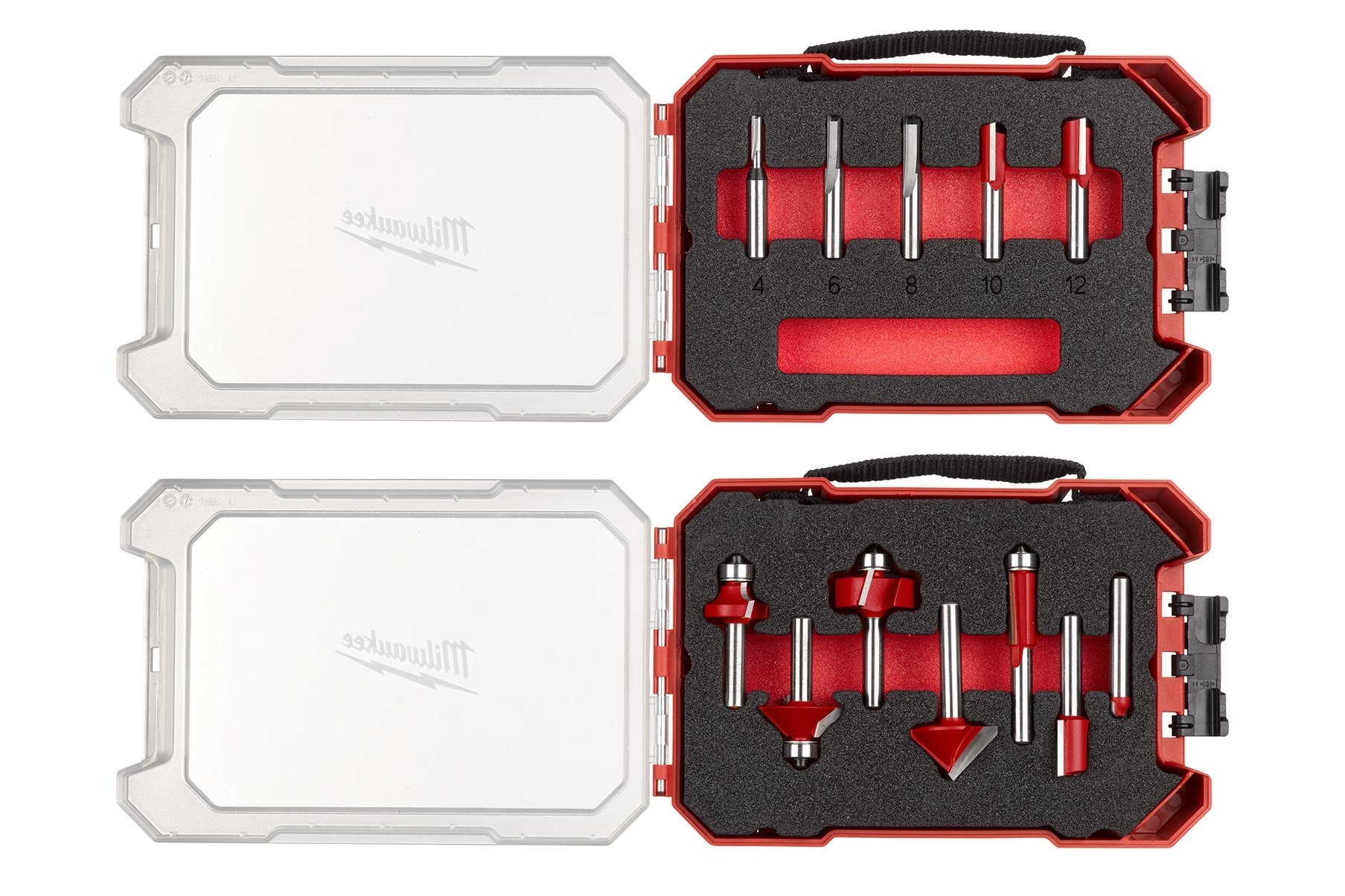 Ergänzend zum Einzelsortiment bietet Milwaukee auch ein siebenteiliges Fräser-Set mit 12-mm-Schaft sowie ein siebenteiliges Set mit 8 mm Schaftstärke an. Beide Sets beinhalten sieben Fräser für häufige Anwendungen in der Holzbearbeitung, darunter Nutfräser, Bündigfräser, Radius-Hohlkehlfräser, Falzfräser, Kantenfräser und Abrundfräser. Ein weiteres Set enthält fünf Nutfräser mit 8 mm Schaft. Die neuen Sets richten sich an Anwender, die häufig wechselnde Fräsaufgaben mit einem kompakten Grundsortiment abdecken möchten und dabei von den gleichen Merkmalen in Bezug auf Präzision, Standzeit und Oberflächenqualität profitieren wollen wie beim Einzelzubehör. Praktisch: Die Boxen aus schlagfesten Kunststoffen besitzen Klarsichtdeckel – der Inhalt ist auf einen Blick erkennbar.